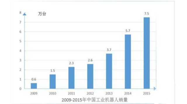 自2013年起我国成为全球第一大工业机器人应用市场,2014年销量达到5.7万台,同比增长56%,占全球销量的1/4,机器人密度由5年前的11增加到36。