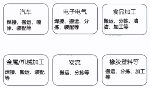 在工业机器人用量大的汽车、电子、家电、航空航天、轨道交通等行业;