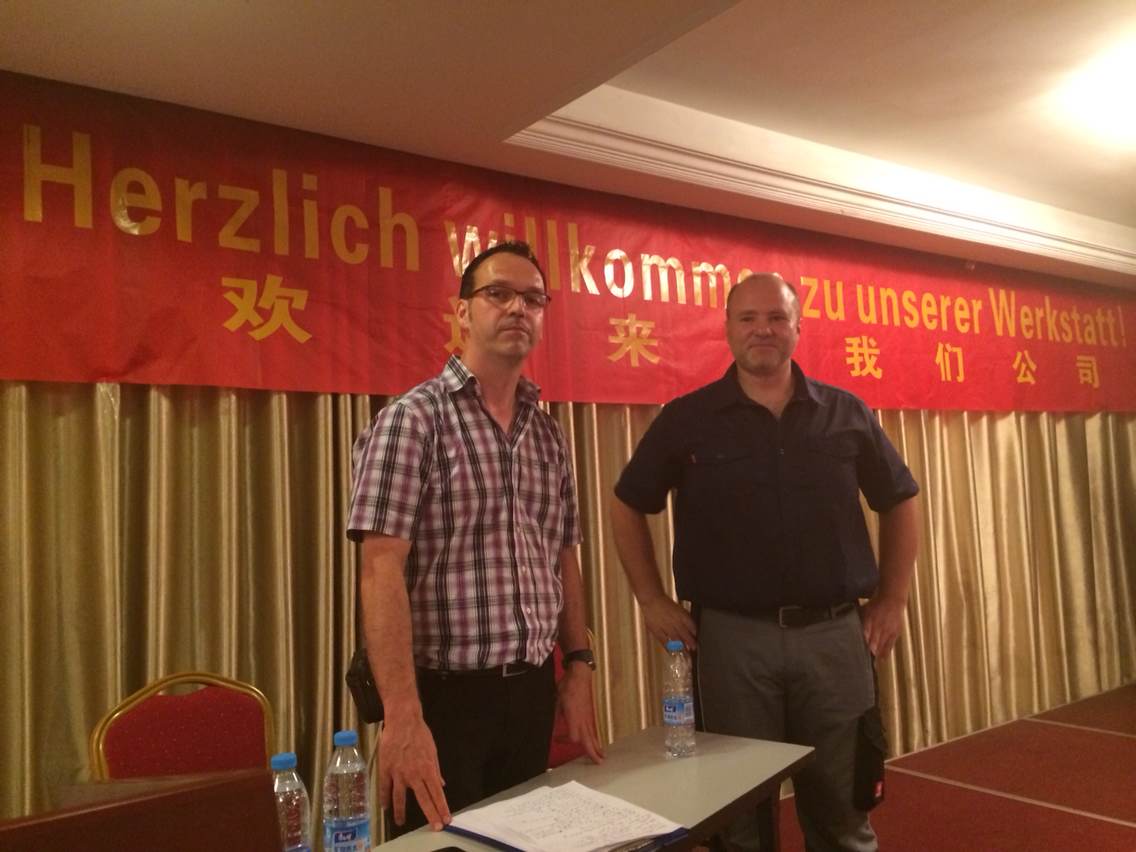 2014年7月31日,在“金蓝领”培训休息期间,德国专家受邀为企业做汽车喷漆方面的培训讲座,介绍德国的先进经验,并于企业员工一起探讨国内在汽车喷漆方面可借鉴的经验。讲座进行了3个多小时,企业员工们热情高涨,与德国专家积极互动,共同学习。