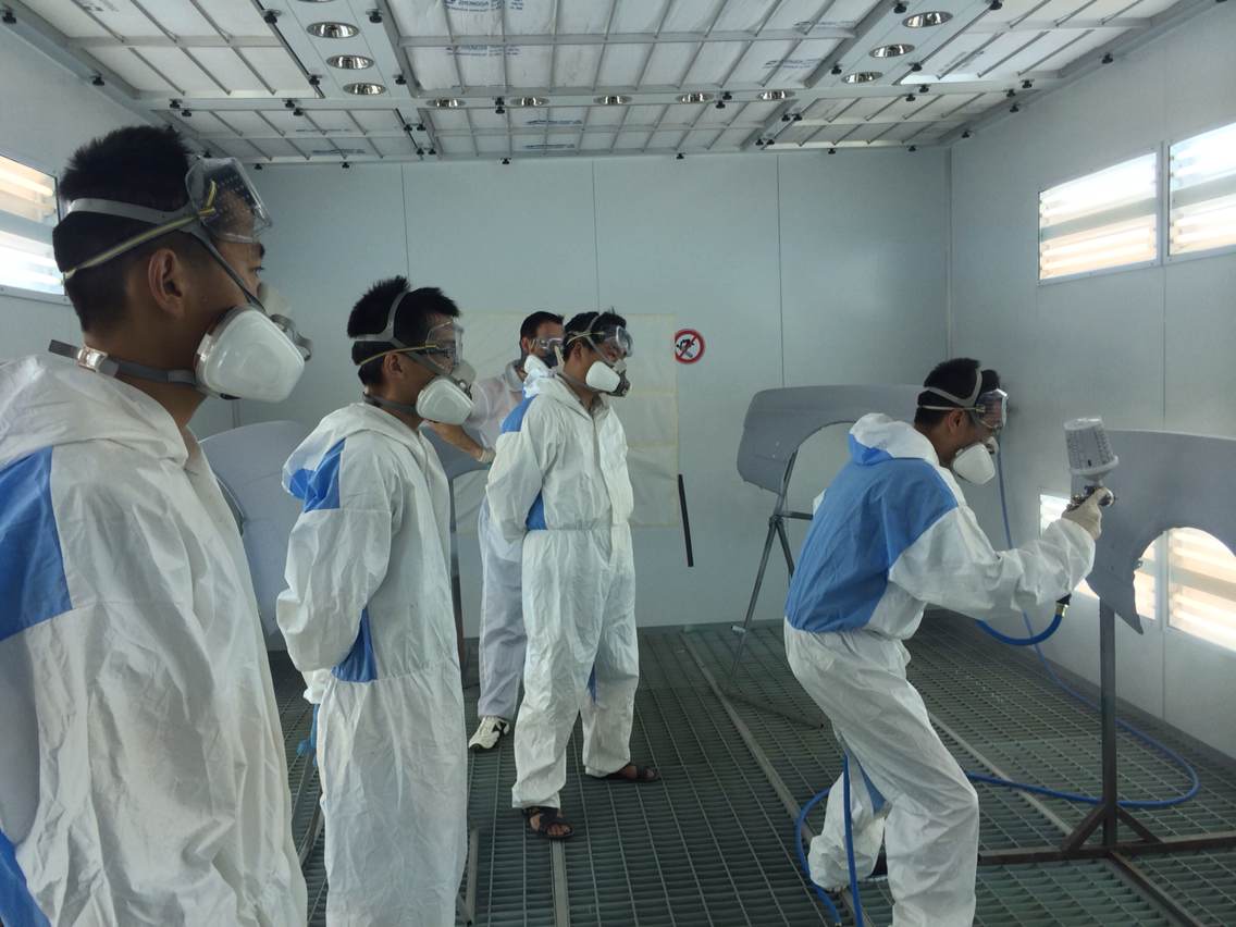 本次“金蓝领”培训内容主要涉及:汽车原厂漆制造工艺与特点;汽车油漆维修标准工艺、流程和操作;汽车油漆调色理论基础与操作工艺;水性漆喷涂工艺理论与操作技巧;色彩的过渡驳口工艺(板内过渡)理论与操作、湿碰湿喷涂工艺介绍等。